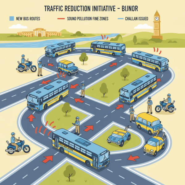 बिजनौर शहर में रोडवेज और निजी बसों के रूट में बड़ा बदलाव, जाम से निजात के लिए नया संचालन प्लान; यातायात पुलिस ने मोडिफाइड साइलेंसर और डग्गामार बसों पर भी चालान