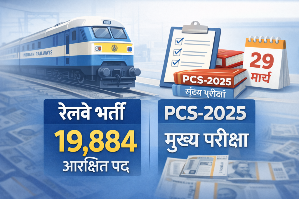रेलवे के 19,884 आरक्षित पदों पर भर्ती और PCS-2025 मुख्य परीक्षा का कार्यक्रम जारी।